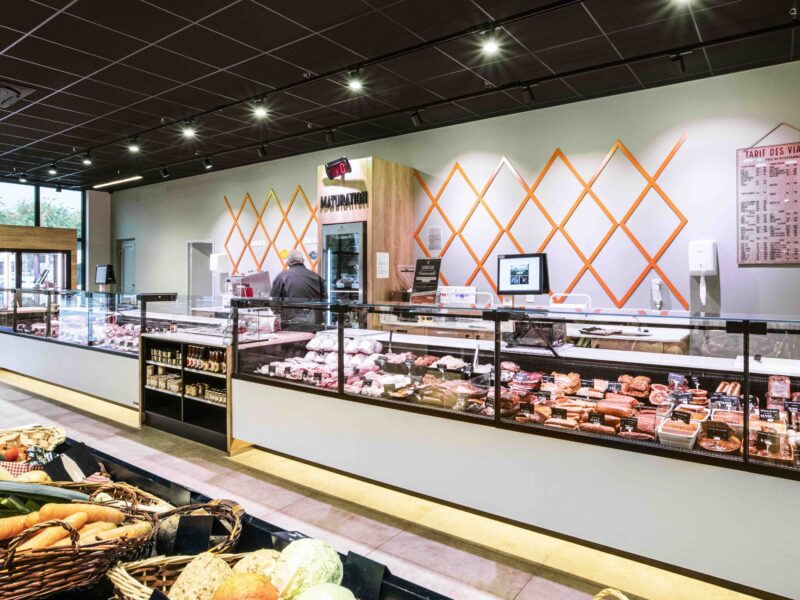 Matériaux nobles, vitrines sur-mesure, scénographie des produits, zones de découpe visibles… chaque détail est pensé pour conjuguer efficacité métier, image de marque et plaisir d’achat.